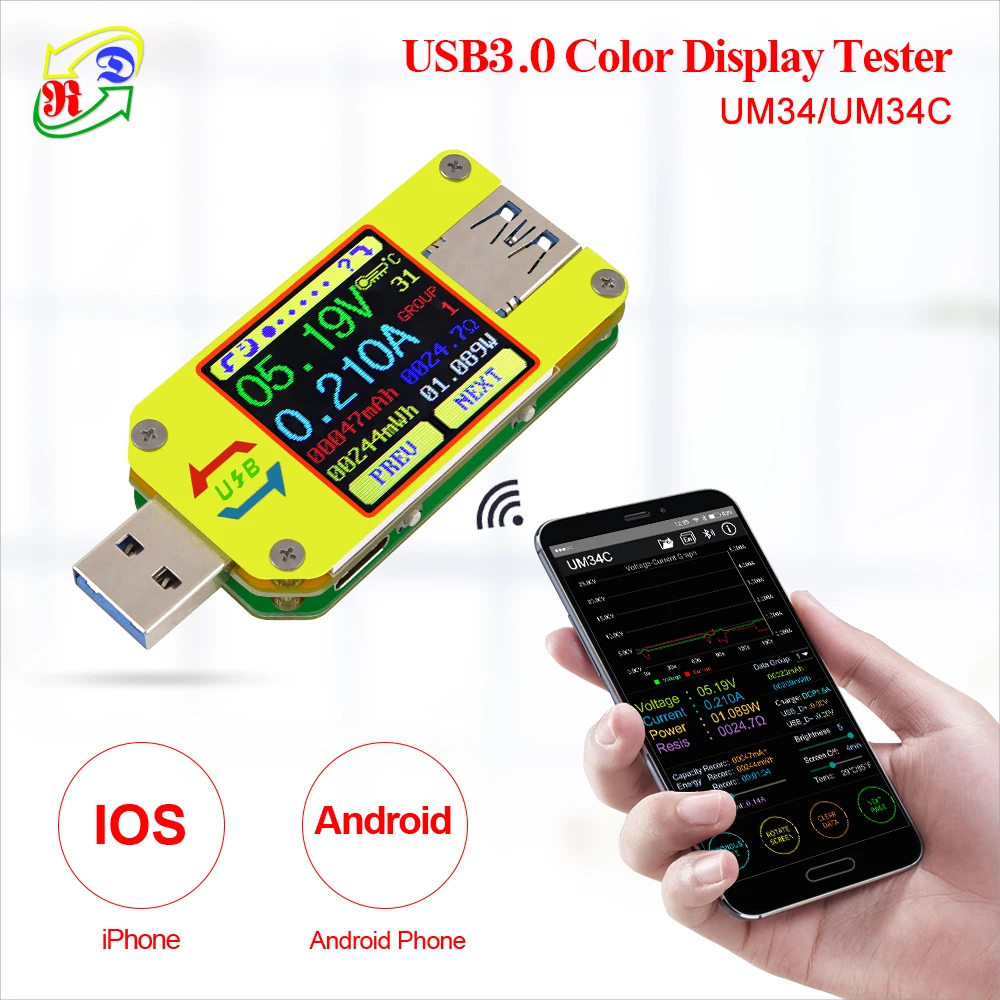 Best Measurement & Analysis Instruments from RD Official Store for Ammeter Measure Cable-Resistance-Tester Battery-Charge Voltage RD UM34 Usb-3.0 Type-C